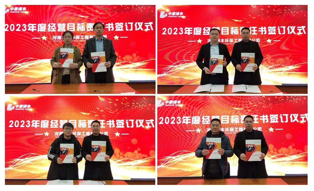 目標責任書簽訂環節,中原綠豐董事長薛水波代公司分別與中高層簽訂年度目標責任書,并與各銷售區域負責人簽訂年度目標對賭協議。有了明確的目標,立了“軍令狀”,2023年全體綠豐人一起朝著既定目標,擼起袖子加油干,新征程上努力再建新功。